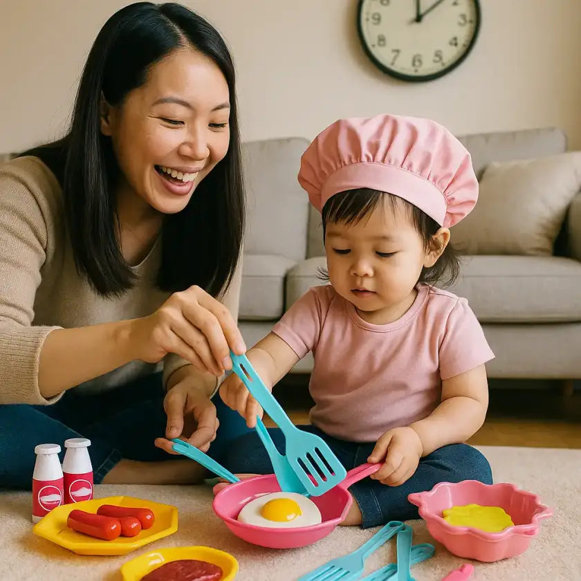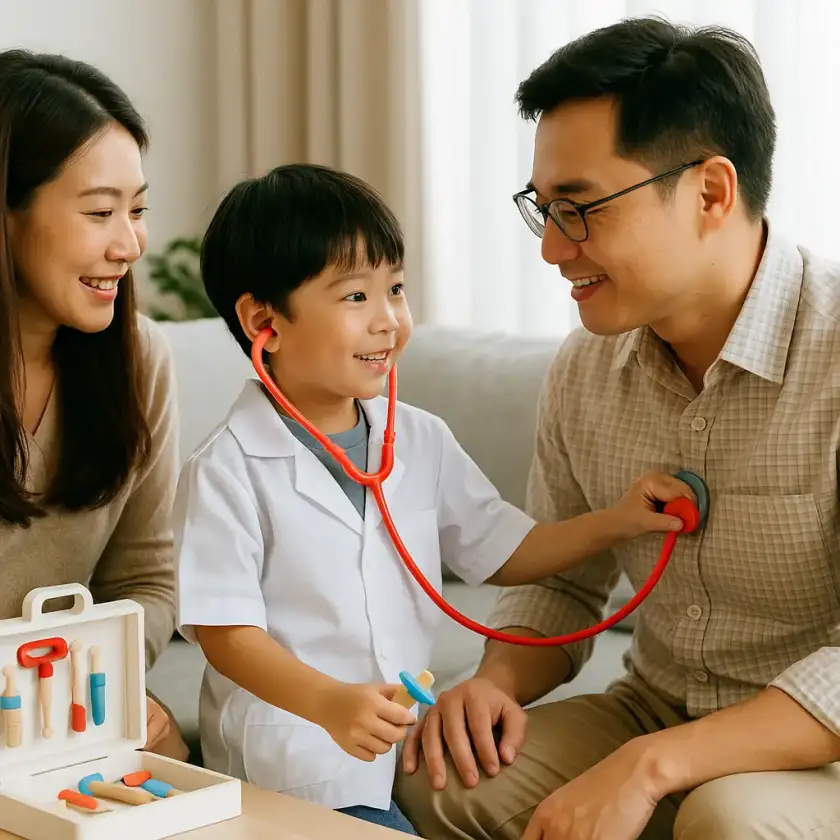 🎭 ฝึกจินตนาการและความคิดสร้างสรรค์ การสวมบทบาทเป็นหมอ ครู เชฟ หรืออะไรก็แล้วแต่ ช่วยให้ลูกได้ใช้ความคิด สร้างเรื่องราวเอง ทำให้สมองยืดหยุ่นและมีจินตนาการสูงขึ้น 🧠 พัฒนาทักษะการแก้ปัญหา เวลาเล่นบทบาทสมมุติ เด็กจะต้องคิดหาวิธีแก้ปัญหาตามสถานการณ์ เช่น “ถ้าคนไข้ไม่สบายต้องทำยังไงดี” ฝึกการคิดวิเคราะห์ตั้งแต่เล็กๆ 💬 เพิ่มทักษะภาษาและการสื่อสาร เด็กจะได้ฝึกพูด สนทนา เล่าเรื่อง และฟังคนอื่นมากขึ้น ส่งผลดีต่อการสื่อสาร การใช้คำศัพท์ และการฟัง 👫 เรียนรู้สังคมและอารมณ์ การเล่นกับพ่อแม่หรือเพื่อนช่วยให้เด็กเข้าใจบทบาทหน้าที่ในสังคม ฝึกการแบ่งปัน การรอคอย และการเข้าใจความรู้สึกคนอื่น 🛡️ เสริมความมั่นใจในตัวเอง การได้รับการยอมรับและกำลังใจจากพ่อแม่เวลาลูกเล่นบทบาทสมมุติ จะทำให้ลูกกล้าคิด กล้าลอง และเชื่อมั่นในตัวเอง ❤️ กระชับสายสัมพันธ์ในครอบครัว เวลาที่ใช้ร่วมกันในการเล่น ทำให้เด็กรู้สึกว่า “พ่อแม่สนใจและรักเรา” เป็นพื้นฐานของความมั่นคงทางใจ
